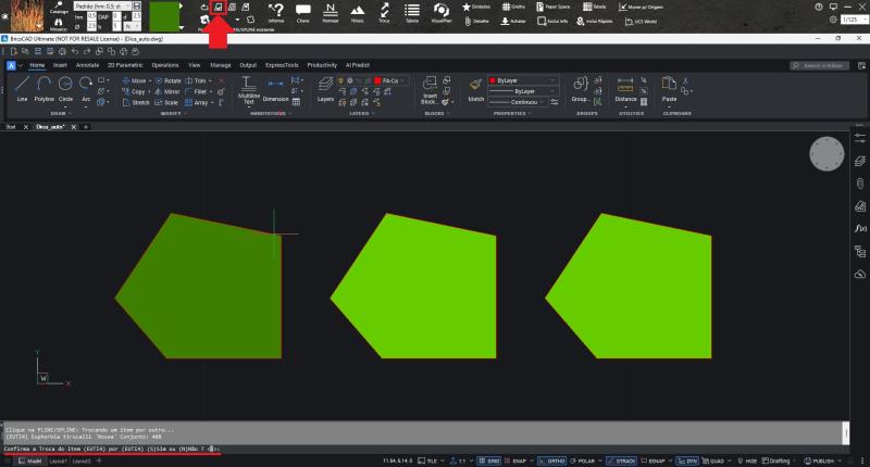 Caso sua intenção seja o contrário — apagar as informações do item atual para substituí-lo por outro —, basta selecionar o novo item, usar a ferramenta “Preenche uma pline existente” e clicar sobre a pline desejada. Na barra de comandos, o programa perguntará se você permite a troca do item; digite “S” para confirmar. As hachuras vão se sobrepor, pois elas não tem relação com as informações, basta apagá-la, mantendo cuidado para não apagar a pline.
