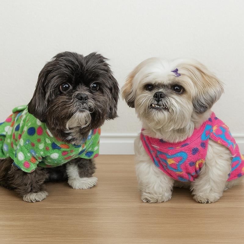 Aqui abaixo você pode ver a Tuca (cachorrinha preta) ao lado da Frida (cachorrinha branca):