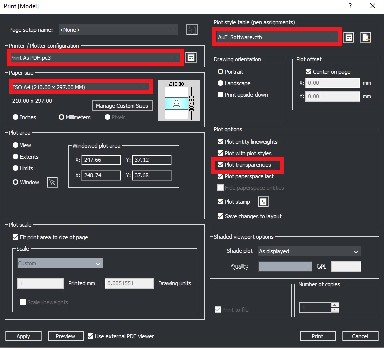 Para garantir que a transparência também apareça na impressão ou no PDF, é importante ativar essa função na janela de plotagem. Veja como fazer: