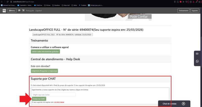 2-Dentro da seção "central de suporte" clique em "chat ao vivo"