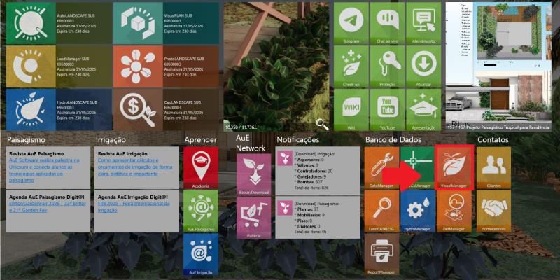 Ao abrir o LandOFFICE, localize na interface a área de Banco de Dados e clique no ícone Visual Manager. É por meio dele que faremos a edição e o gerenciamento dos materiais que serão utilizados no projeto.