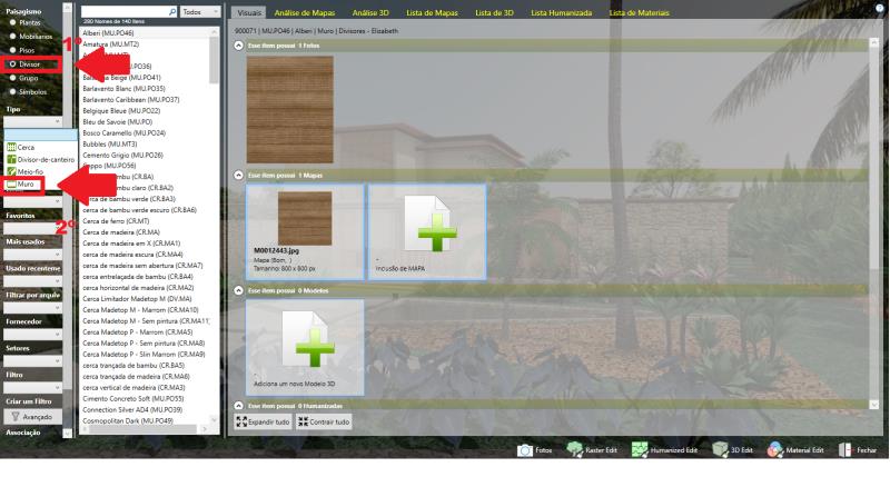 Depois de clicar em Associar Arquivo, abrirá a área com as texturas já criadas. Por isso, é importante nomear a textura corretamente no início, para que agora seja fácil encontrá-la pelo nome e aplicá-la rapidamente ao divisor.